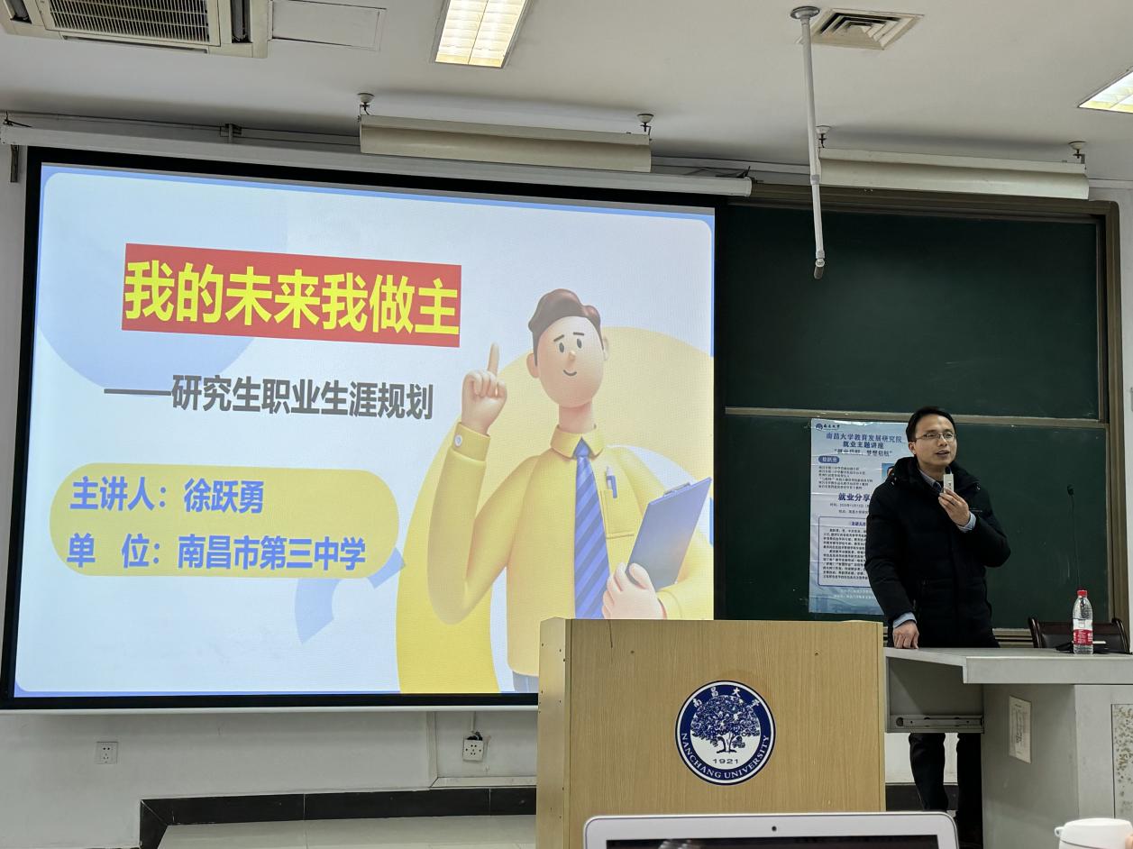 12月13日下午7点,教育发展研究院成功邀请徐跃勇老师到校于研究生院114教室开展以“就业启航、梦想启航”为主题的讲座。讲座由班级导师黄秋帆老师主持。此次讲座旨在帮助在校研究生更好地理解就业岗位特别是教师岗位,规划自己的职业发展道路。